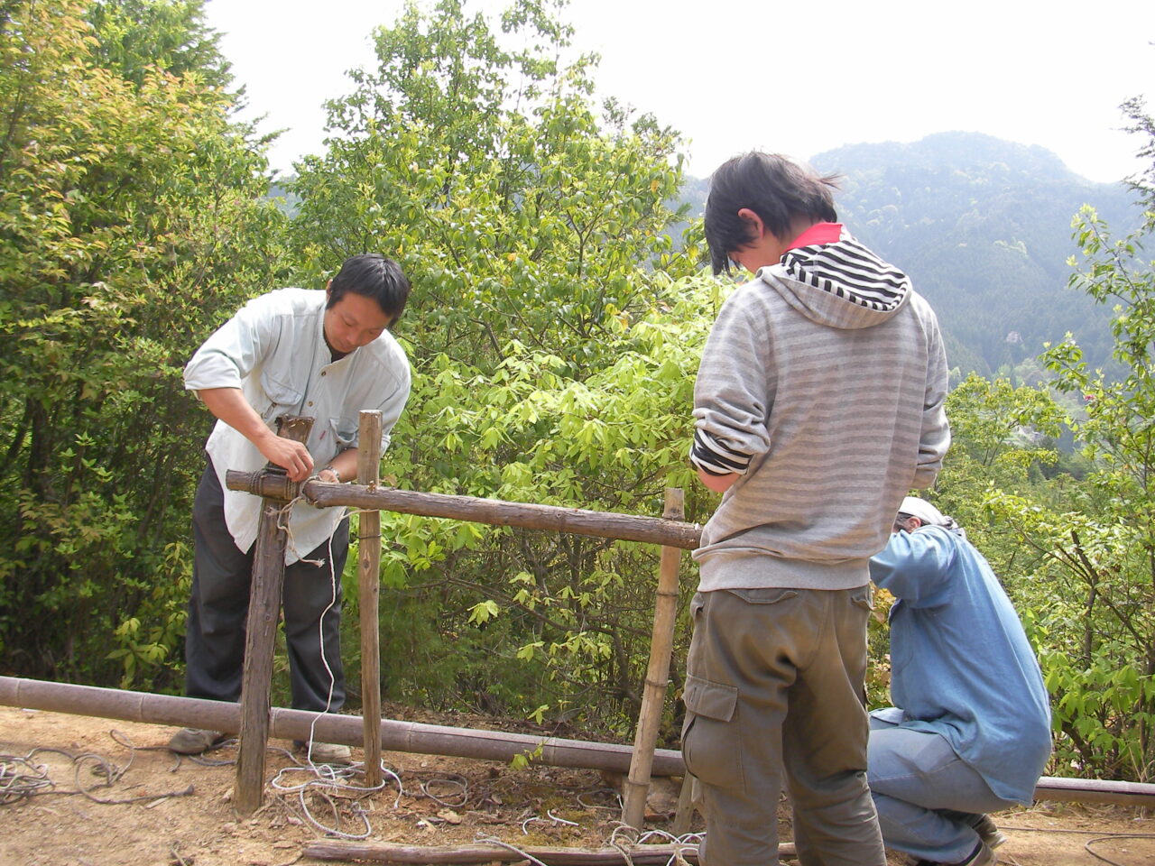 柱を建てる作業の中に、