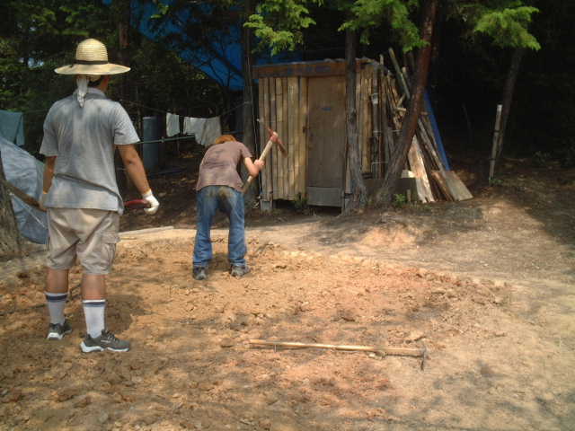 そこは、木々に囲まれた、でこぼこの斜面でした。