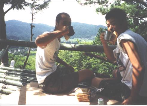 自分たちの手で立てた見晴台。